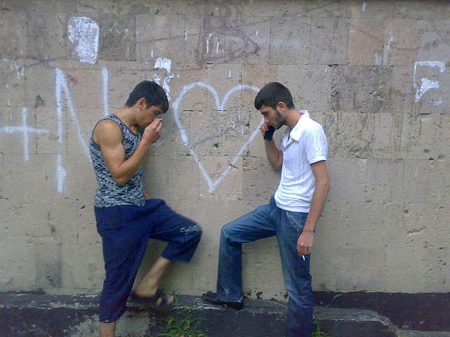 «Ռոմանտիզմը Չարբախատիպ վայրերում» (խնդրում եմ չտրվել խաբկանքին ու չդիտարկել այս լուսանկարը որպես հոմոսեքսուալիզմի քարոզ, նրանք վստահաբար ամեն անգամ այդ սիրտը տեսնելիս իրենց «ուզածներին» են զանգում... հենց տեղում... անգամ եթե րոպե չեն ունենում...)