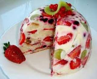 5.Ներքևի մասում լցնել մի քիչ ելակ և կիվի: Վրան լցնել բիսկվիթի կտորներ, ծածկել կրեմով: Այսպես կրկնել ևս մեկ շերտ: