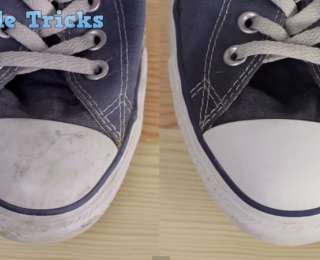 Հարկավոր է՝ ջուր, ատամի հին խոզանակ, ատամի մածուկ, սպունգ: 1. Թաց սպունգով քսել այն հատվածին, որը պետք է մաքրեք: 2. Ատամի հին խոզանակին ճզմել ատամի մածուկ և այն քսել կեղտոտված հատվածներին: 3. Դրանից հետո մաքրել կոշիկները չոր, մաքուր սպունգով: