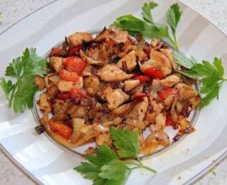 8. Բանջարեղենն ավելացնել հավին, թողնել մոտ 3 րոպե, վերցնել կրակից և մատուցել: