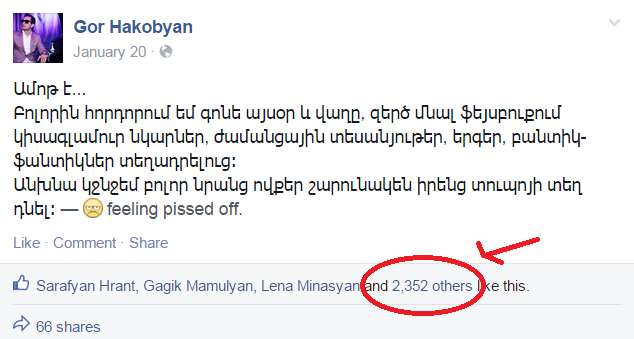 Անկախ Հայաստան անվան տակ ներկայացող կնամոլ և սերիալագետ երիտասարդին ֆեյսբուքում այնքան են սիրում, որ երբ նրա էջը ջնջվել էր, մարդիկ հատուկ էջեր էին բացում #saveAnkakh անունով: Նրա գրած բոլոր ստատուսները, անգամ հասարակ «բարի լույս»-ն ու «բարի գիշերը» լայքերի պակաս չեն ունենում: