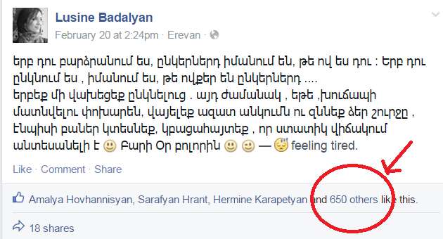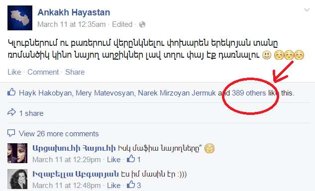 Այսօր որոշել ենք ձեզ ներկայացնել հայկական ֆեյսբուքի ԹՈՓ 10 ամենից շատ լայքվող օգտատերերին: Օգտատերեր, ում էջում լայքվում է անգամ անլայքելին.
