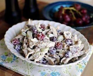 4.Հավին ավելացնել ընկույզը, խաղողը և նեխուրը, վրան լցնել սոուսը և լավ խառնել: Դնել սառնարան մոտ 1 ժամով: