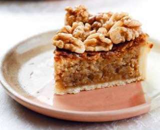 Կարագը թողնել՝ փափկի, հարել շաքարավազի հետ: Ձուն կոտրել, թեթևակի հարել և խառնել կարագի զանգվածին: Սոդան խառնել ալյուրին, ավելացնել ձվի զանգվածին: Խմորը դնել սառնարանի մեջ: Ընկույզը մանրացնել կամ աղալ: Շաքարը լցնել չոր թավայի մեջ, դնել շատ թույլ կրակին և խառնել այնքան, որ այն հալվի և գույնը փոխվի: Ավելացնել մեղրը, խառնել: Ավելացնել նաև սերուցքը, խառնել, եռալուն պես խառնել ընկույզը և վերցնել կրակից: Խմորը բաժանել երկու մասի, մի մասը բացել, դնել յուղած տապակի մեջ: Ընկույզի միջուկը տարածել խմորի վրա, ծածկել երկրորդ շերտով: Եզրերն ամրացնել, դնել 180 աստիճան տաք ջեռոցի մեջ 35-40 րոպե: Հանել, թողնել՝ սառչի, վրան շաքարի փոշի ցանել: