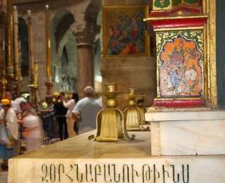 Ս. Հարության տաճարի մեծ գմբեթի տակ է գտնվում Քրիստոսի գերեզմանը: Տաճարը բաժանված է վեց եկեղեցիների. Ուղղափառ, Կաթոլիկ, Հայ, Ղպտի, Սիրիական եւ Եթովպիայի. Տաճարում 10-12 մետր խորությամբ խորանը, ինչպես նաեւ Գողգոթայի բարձունքը, Համբարձման սրբատեղիին կից հողերիև շենքերի մի մասը նույնպես Երուսաղեմի հայոց պատրիարքության սեփականությունն է: