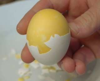 1. 1 րոպե թափահարեք հում ձուն, իսկ հետո եփեք այն: Կստացվի դեղին ձու: