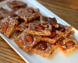 7. Լցնել խառնուրդը կարագով պատած տապակի վրա և զարդարեք նուշով: Թողնել՝ սառչի: