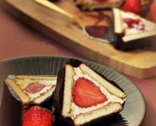 Վերևը դնել թխվածքաբլիթները 3 շերտով: Թխվածքաբլիթնի վրա լցնել կաթնաշոռով խառնուրդը և մեջտեղում դնել ելակը: Զգուշորեն փաթաթել ռուլետի նման՝ բարձրացնելով կողքերը վերև: Թեթև սեղմել և տեղափոխել սառնարան մոտ 2 ժամ: