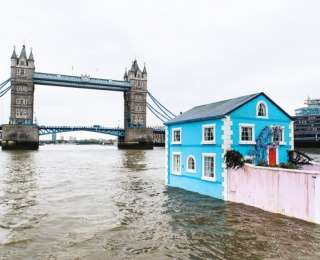 Կանաչ այգով կապույտ լողացող տնակը լոնդոնցիներին հիշեցնում է բնակարանը վարձով հանձնելու նոր կանոնների մասին: Բնակավայրի պլանավորման միջազգային ծառայությունը մշտապես աչքի է ընկել աննախադեպ ակցիաներով՝ Ռիո դե Ժանեյրոյի Օլիմպիական խաղերը նախապատրաստելուց մինչեւ պրոեկտորի օգնությամբ շրջագայության մասին արտ-ինստալյացիաները: Թեմզայով լողացող տնակն օժտված է բնակելի ինտերիերով և ունի շան համար նախատեսված տնակ: Կապույտ լողացող տնակն ունի լոգարան, երկու ննջարան և հյուրասենյակ: Տնակում ընթրելու անվճար ծառայությունը ներառված է արժեքի մեջ: