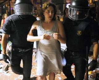 Իսկ այս՝ 2013 թվականի նկարում կնոջը ոստիկանությունը բռնի կերպով հեռացնում էր բանկի առաջ իրականացվող ցույցից, որտեղ կինը պայքարում էր իր հարևանի բնակարանի օտարման դեմ։