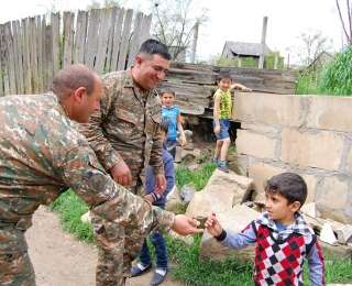 Սիրելի՛ երեխաներ, դուք մեր երկրի ապագան եք, դուք պաշտպանված եք ամեն օր, ամեն ժամ, որովհետև հայկական բանակի զինծառայողն ապահովում է ձեր ուրախ և անհոգ մանկությունը, պարզապես ամեն օր ծառայում է Հայաստանի Հանրապետությանը: