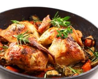 Հավի մեջ դնել 4 մասի բաժանած սոխը, 2 դափնուտերև ,կիտրչոնի կեսը:Հավին քսել 1ճաշի գդալ բուսայուղ,աղ ու պղպեղ անել,տապակի մեջ դնել հավը`կուրծքը վերև դիրքով,վրան դնել մի քանի դափնուտերև և ծիտրոնի ճյուղ:Պղպղները լվանալ, սերմերը հեռացնել և կտրել 4-6 կտորների:Սոխը ր սխտորը մաքրել,բաժանել կտորների,շարել հավի կողքերը,լցնել մնացած ծիտրոները: