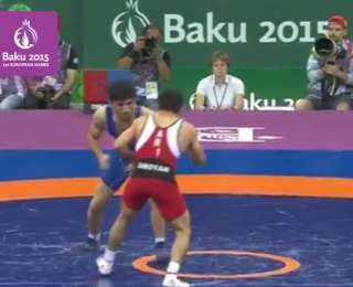 Հունիսի 13՝ Եվրոպական խաղերի առաջին օրը: Հունահռոմեական ըմբշամարտի 59 կգ քաշային կարգում Հայաստանը ներկայացնող մարզիկներ Ռոման Ամոյանը բրոնզե մեդալի պայքարում էր Ադրբեջանը ներկայացնող Էլման Մուխթարովի դեմ: