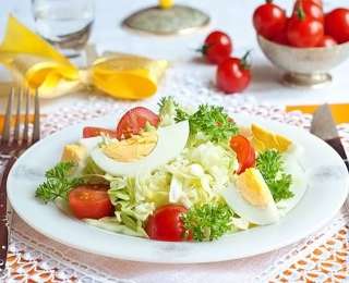 Կաղամբն ու լոլիկը կտրատել, ավելացնել ըստ ճաշակի համեմունքներն ու բուսայուղը, վերջում կտրատած ձուն, և մեր աղցանը պատրաստ է: