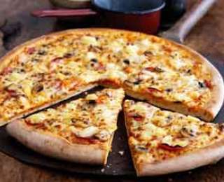 Խմորը բացել և դնել յուղած տապակի վրա: Կտրատած սնկին ավելացնել 1 ճ.գդ. բուսական յուղ, մեկ պճեղ սխտոր, մեկ բաժակ սպիտակ գինի և եփել 15 րոպե, հետո աղ ցանել: Խմորին բուսական յուղ քսել, վրան լցնել լոլիկը, խոզապուխտի կտորները, սունկը և քերած պանիրը: Դնել նախօրոք տաքացրած ջեռոցի մեջ և թողնել 20 րոպե: