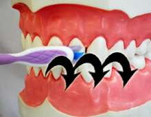 6. Կատարելով առաջ-ետ շարժումները` մաքրեք վերին և ստորին ատամնաշարերի ծամող հատվածները: