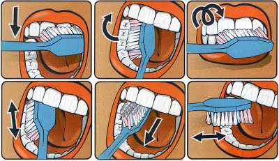 4.Շրջանաձև շարժումներով մաքրեք ատամի արտաքին մակերեսը:5.Յուրաքանչյուր ատամի մակերևույթը մաքրեք նաև բերանի խոռոչի կողմից (ներսից): Խոզանակը պահեք ատամի եզրերին ուղղահայաց: