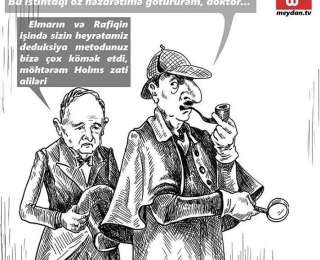 Meydan TV-ի երգիծանկարիչը հերթական անգամ ծաղրի է ենթարկում Ադրբեջանի նախագահ Իլհամ Ալիևի հայտարարությունը, թե հայտնի լրագրող, իշխանությունների քննադատ Էլմար Հուսեյնովի սպանությունն ըստ արժանվույն կհետաքննեն, և իհարկե մինչ օրս ոչինչ չի պարզվել: Նույն բախտն է վիճակվելու նաև լրագրող, քիչ թե շատ անկախ մեդիա ռեսուրդների թղթակից, 31-ամյա Ռասիմ Ալիևի՝ օրերս աղմուկ հանած սպանության գործին: Նկատենք, որ Իլհամ Ալիևը ներկայացված է Շերլոկ Հոլմսի կերպարով: