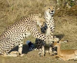 Լուսանկարիչ Միշել Դենիսին բախտ վիճակվեց լուսանկարել այս անհավանական պահերը: Սա հազվադեպ հանդիպող դեպք է, երբ հովազները, որոնք սովորաբար հոշոտում են եղնիկներին, ընկերություն են անում եղնիկի հետ և շոյում միմյանց: