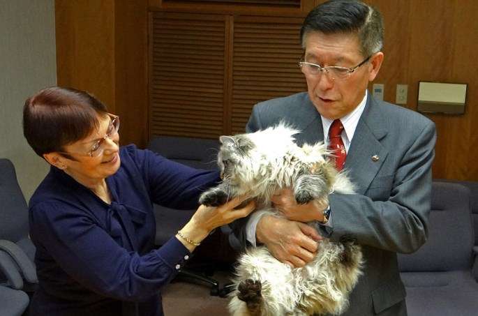Միր անունով սիբիրյան կատու` ճապոնական Ակիտա նահանգի նահանգապետին։ Ավելի վաղ անձամբ նահանգապետը Պուտինին շան ձագ էր նվիրել` ի նշան 2011թ.–ի ջրհեղեղի հետևանքների վերացման գործում Ռուսաստանի ավանդի։