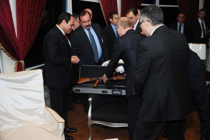 Եգիպտոս այցելության ժամանակ նվերի կարգավիճակով Պուտինն իր եգիպտացի կոլեգա Աբդուլ–Ֆատտախ Աս–Սիսիին Կալաշնիկովի ինքնաձիգ նվիրեց։ Այդպիսի նվերը երկու երկրների միջև ռազմական համագործակցության ակնարկ էր և հետո միայն նախկին զինվորականի համար ճիշտ ընտրված նվեր։