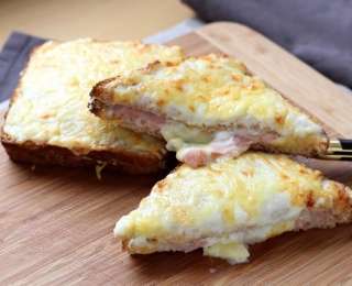 1 կտորի վրա շաղ տալ քերած պանիրը, խոզապուխտի կտորները և 2-րդ կտոր հացով ծածկել: Ձեռքով թեթևակի սեղմել և դարձյալ պատել սոուսով, ավելացնել քերած պանիրը: