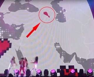 Աչքիցս չվրիպեց մի կարևոր բան: Մեր երգի բեմադրության ընթացքում էկրանին մոլորակն է՝ մայրցամաքներով, երկրներով ու սրտիկներով: Ու ի՞նչ: Ուշադրություն դարձրե՛ք նկարին: Պարզ երևում է, որ Արցախը Հայաստան չէ: Ավելին՝ առանձին միավոր էլ չէ, այլ Ադրբեջանի մաս: