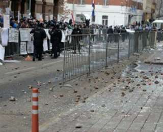 Ցուցարարները կոտրել են կառույցի պատուհանների ապակիները: Ոստիկանությունը չի միջամտել եւ բերման չի ենթարկել օրինախախտներին:
