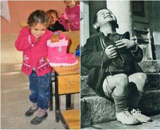 1946 թվականից անցել է շուրջ 70 տարի, ու ես համացանցում հանդիպում եմ մեկ այլ նկարի: Փոքրիկ սիրիացի աղջնակն ուրախանում է նոր կոշիկներ ստանալու առիթով: Կրկին անկեղծ ժպիտ ու կրկին անասելի տխրություն նրա անկեղծ ժպիտի ետևում: Այս փոքրիկն էլ է որբ, փախստական է, ու նրա ծնողներն էլ ամենայն հավանականությամբ Սիրիայում տեղի ունեցող պատերազմի զոհ են դարձել: