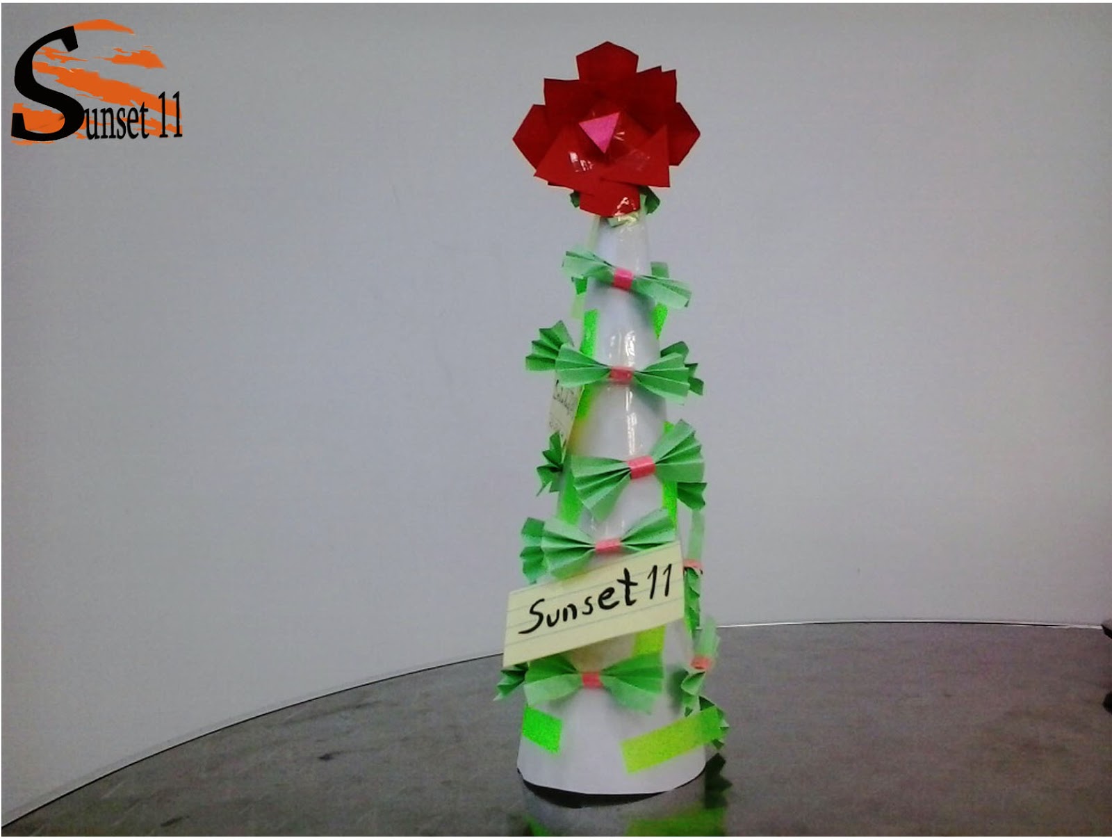 Այսպիսի տոնածառ, որին ես անվանեցի Տոնածառ[ՅԱՆ]2012, պատրաստելու համար հարկավոր է թուղթ (այս դեպքում` սպիտակ, կանաչ, վարդագույն եւ կարմիր), կպչուն ժապավեն, կարիչ եւ մկրատ: