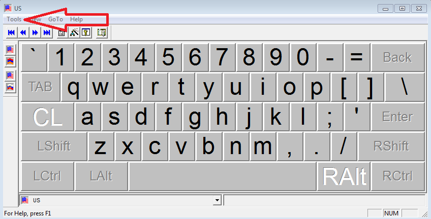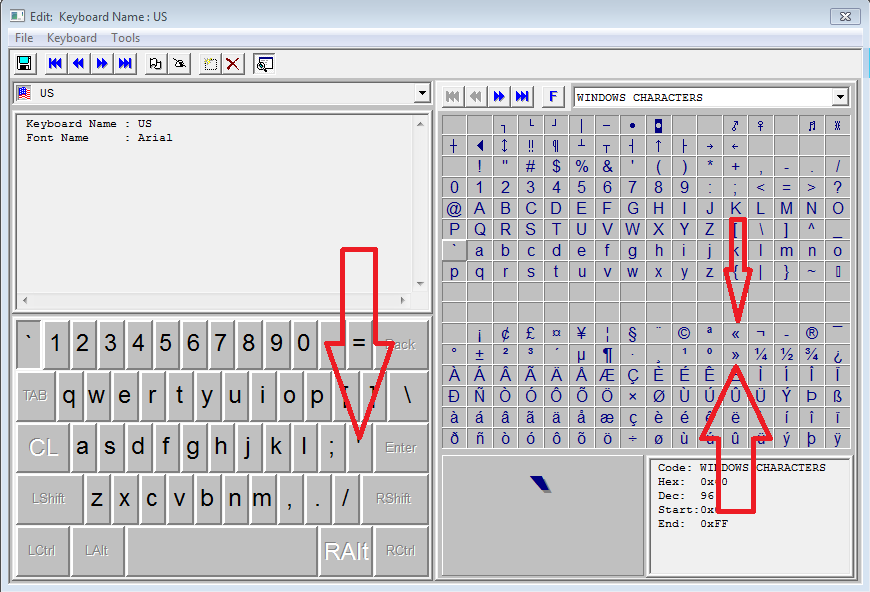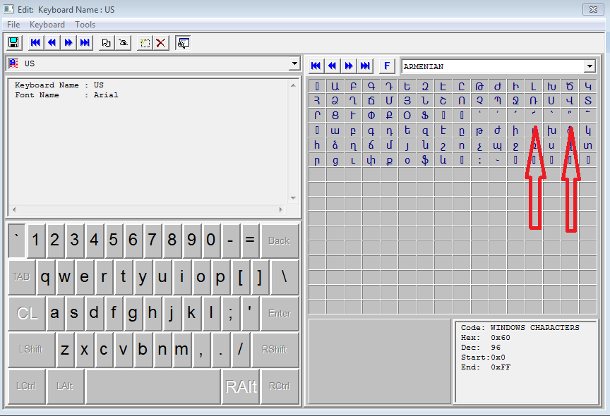 Նշում ենք, թե ստեղնաշարի որ կոճակի տակ ինչ նշան ենք ուզում, կուրսորով սեղմում ենք դրա վրա: Դիցուք՝ սլաքով նշված կոճակի տակ ուզում ենք, որ չակերտներ լինեն: