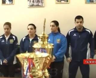Տուն վերադառնալուց ժամեր անց գյումրեցի ծանրորդներին մեծարել են արդեն հարազատ քաղաքում: ՀԱՕԿ-ի Շիրակի մարզի ներկայացուցչության գրասենյակում էին հավաքվել մարզաշխարհի ներկայացուցիչներ, պաշտոնյաներ և երկրպագուներ: Իրենց սրտի խոսքն են ասել և շնորհավորել Վարդևան Գրիգորյանն ու Արմեն Բադեյանը: Ներկաները մեկ րոպե լռությամբ հարգել են քառօրյա պատերազմի ընթացքում զոհված զինվորների հիշատակը: Հատուկ գավաթների և մրցանակների են արժանացել Եվրոպայի նորընծա չեմպիոն Նազիկ Ավդալյանը, փոխչեմպիոններ Տիգրան Մարտիրոսյանն ու Գոռ Մինասյանը, ծանրորդուհիներ Աննա Գովելյանն ու Քրիստինե Պետրոսյանը, մարզիչներ Արտաշես Ներսիսյանը, Հակոբ Փիլոսյանն ու Հարություն Եղոյանը, ինչպես նաև՝ միջազգային ասպարեզում աչքի ընկած գյումրեցի սամբիստները: Այնուհետև հնչել է Հայաստանի օրհներգը, որից հետո էլ Նազիկ Ավդալյանը կտրել է տոնական տորթը: