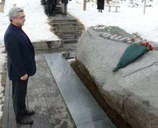 Սյունիքի և Վայոց Ձորի մարզերում նախընտրական հանդիպումներից հետո` Երևան վերադարձի ճանապարհին Սերժ Սարգսյանն այսօր կանգ առավ նաև Արարատի մարզի Զանգակատուն գյուղում, այցելեց Սևակի տուն, ծաղիկներ դրեց նրա ու տիկնոջ` Նելլի Մենաղարաշվիլու գերեզմանին: