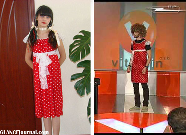 Դիանա Մալենկոն մի քանի տարի առաջ, համագործակցելով «Շանթի» հետ, այս սպիտակ պուտերով կարմիր զգեստը գործի բերումով տանում է հեռուստաընկերություն, որից հետո զգեստը թողնում է այնտեղ: Եվ ահա անցնում է մի քանի տարի, և մի օր հեռուստացուցով VItamin ակումբ ծրագիրը դիտելիս իր զգեստը տեսնում է Գարիկի` նույն ինքը ԵԿԱՏԻՐԻՆԱՅԻ հագին: Այսպիսով բոլորի կողմից շատ սիրված կերպար Եկատիրինան կրում է Դիանա Մալենկոյի մանկության զգեստը...))
