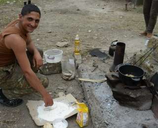 Էսօր հրետանային մարտկոցի զինվորների հետ էինք։ Նրանք են հենց կենտրոնական ուղղությամբ խոցել հակառակորդին։ Հաշվարկի Հովսեփը Սեւանից է։ Այսօր մի ձկնորս տղաներին գետից բռնած թարմ ձուկ էր բերել։ Իսկ այն տապակողը Հովսեփն էր։ Նա է ձկի «մասնագետը»։