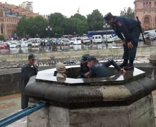Հանրապետության հրապարակի շատրվանների մեջ այսօր ևս մի քաղաքացի է մտել։ Ոստիկանները բացատրական աշխատանքների միջոցով նրան դուրս բերեցին այնտեղից։ Կինը լռում է և որևէ բացատրություն չի տալիս արարքի համար։ Այս պահին կնոջը շրջապատել են ոստիկանության աշխատակիցներ և մի քանի քաղաքացիներ։
