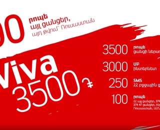 «Viva 3500» սակագնային պլանի բաժանորդներն այժմ հնարավորություն ունեն օգտագործելու 100 րոպե խոսելաժամանակ դեպի ՀՀ այլ, 374 97 և 374 47 ցանցեր, ինչպես նաև դեպի Ռուսաստան, ԱՄՆ և Կանադա զանգահարելու համար՝ նախկին 50-ի փոխարեն: