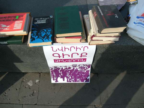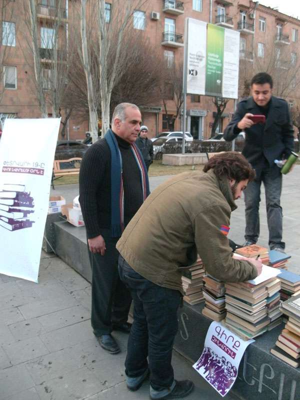 Մարդկանց հոսքը չէր դադարում: Թամանյանի արձանի պատվանդանը աստիճանաբար ծածկվում էր գրքերով: Շատ կարևոր էր, որ բոլորի բերած գրքերը շատ լավն էին: Հերթով ուսումնասիրում էինք, քննարկում ու համոզվում, որ զինվորին անհետաքրքիր բան չենք ուղարկում: