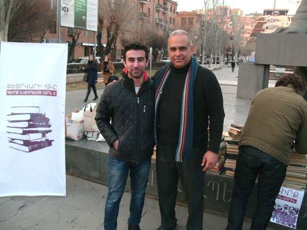 Առաջինը սիրված հաղորդավար Արմեն Դուլյանը եկավ: Ինչպես և սպասվում էր, նա դատարկաձեռն չէր եկել: Նվիրեց գրքերը, խոսեցինք, ծիծաղեցինք ու ակցիայի շարունակության բանավոր պայմանավորվածություն ձեռք բերեցինք: