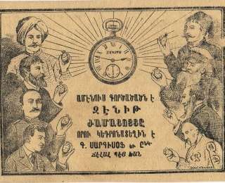 Ներկայացնենք 1905 թ. այս ուշագրավ գովազդի նմուշը՝ Կ.Պոլսի «Գառնիկ Սարկիսօֆ եւ Ընկ.» վաճառատանը շվեյցարական Zenith բարձրակարգ ժամացույցների վաճառքի մասին: