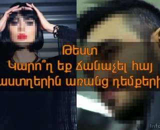 Մենք՝ հայերս, շատ տաղանդավոր ազգ ենք, և դա մեկ անգամ չէ, որ ապացուցել ենք աշխարհին: Հայ աստղերը, մասնակցելով միջազգային մեծ մրցաշարերի, միշտ բարձր են պահել հայի անունը: Իսկ մենք որքա՞ն լավ ենք ճանաչում մեր աստղերին: Infoman.am-ը կազմել է հերթական թեստը, որտեղ ընդգրկվել է հայ աստղերի մի տասնյակ, որոնց բոլորս ենք ճանաչում: Դուք պետք է փորձեք ճանաչել աստղերին աղավաղված դեմքերով: