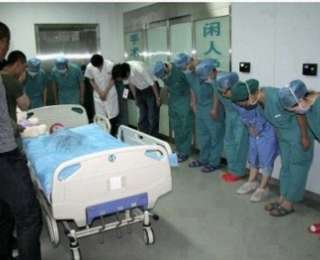 ՇԱՏ ՀՈՒԶԻՉ ԴԵՊՔ!!! Այս նկարում պատկերված է տեսարանը, երբ չինացի փոքրիկ երեխայից պետք է անջատեն արհեստական շնչառություն տվող ապարատը, քանի որ այլեւս գրեթե ոչ մի հույս չկար փրկության: Երեխայի ծնողները որոշեցին փրկել նույն հիվանդանոցում գտնվող երկու հիվանդ այլ փոքրիկների, որոնց ապրելու համար հարկավոր էր երիկամ եւ լյարդ: Բժիշկները գլուխ են խոնարհում փոքրիկի առջեւ, քանի որ ընդամենը մեկ ժամ հետո նրա շնորհիվ շարունակելու են ապրել երկու այլ երեխաներ: