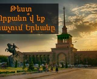 Այս թեստում տեղ են գտել Երևանի մասին պատմող նշանակալից և կարևոր հարցեր, որոնց մասին պետք է իմանան ոչ միայն Երևանցիներն, այլ բոլոր այն մարդիկ, ովքեր իրենց հայ են համարում: Նյութի աղբյուր՝ http://infoman.am/tester/466-test-yerevani-masin.html Կայքում տեղ գտած մտքերն ու տեսակետները հեղինակի սեփականությունն են և կարող են չհամընկնել BlogNews.am-ի խմբագրության տեսակետների հետ: print Տպել