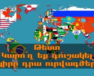 Մենք բոլորս գիտենք, որ Իտալիան աշխարհի քարտեզի վրա կարծես երկարաճիտ կոշիկ լինի: Սակայն մյուս երկրների ուրվագիծը քչերն են հիշում, հազիվ թե որևէ մեկը ուշադրություն դարձրած լինի դրանց: Infoman.am-ը ձեզ համար պատրաստել է փորձություն, որը ցույց կտա, թե ով է հավատարմորեն գնացել դպրոց, իսկ ով չի սիրել աշխարհագրության դասերը: