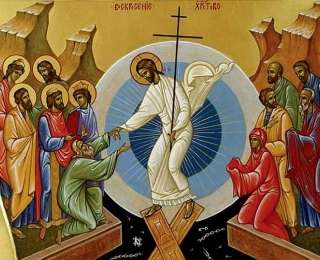 Կանայք վախով, բայց միևնույն ժամանակ մեծ ուրախությամբ իսկույն դուրս ելան գերեզմանից և վազեցին պատմելու աշակերտներին։ Հանկարծ Հիսուսը նրանց դիմացը ելավ և ասաց. - Ողջո՜ւյն ձեզ։