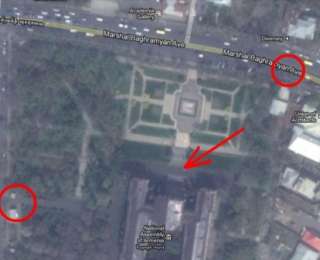 Նկարում սլաքով ցույց է տրված, թե որտեղ է նա վիրավորվել։ Դա ԱԺ շենքի գլխավոր մուտքի առաջին աստճանահարթակն է։ Այն տարածքը, որտեղ դիմավորում են հատուկ հյուրերին (դա երևում է նաև panorama.am-ի նկարում)։