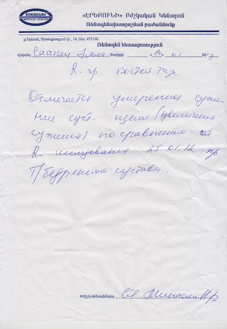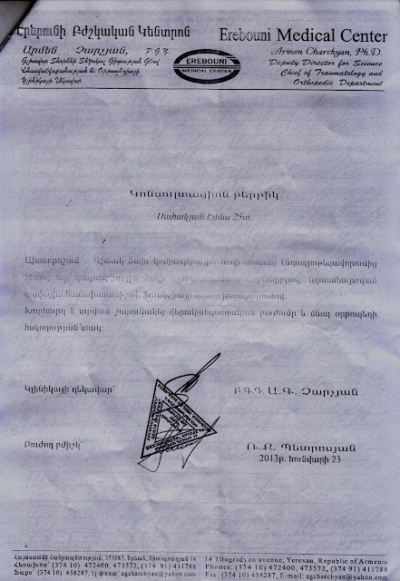 Ախտորոշումը՝աջակողմյան կոքսարտրոզ, որպես հիմնական հիվանդության բարդություն և հետևանք: Երեք տարի առաջ վիրահատվել է ձախ ոտքս: Վիրահատությունը արժե 5200 դոլար: