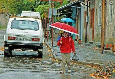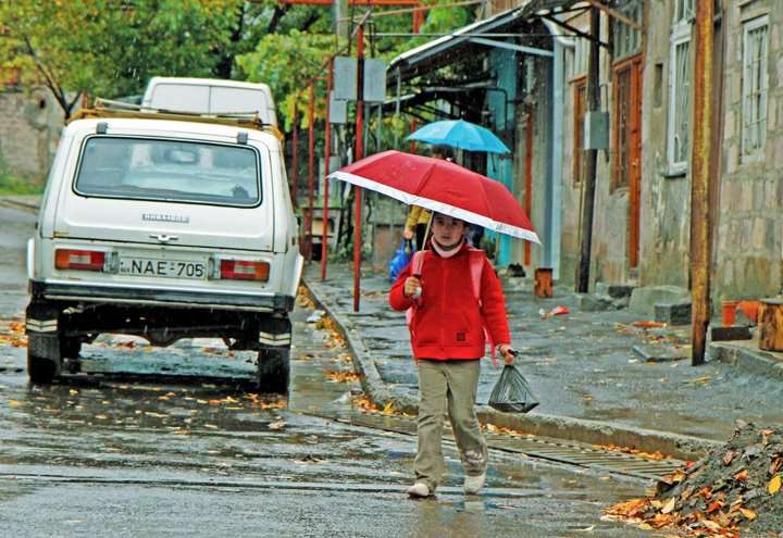 Երբ ճանապարհորդում ես պատմական Հայաստան, վերադառնալիս զարմանում ես, թե ինչքան հուշարձան ես նկարել: Բայց երբ տեսնում ես հաճելի դեմքեր, հիշում ես, որ մարդիկ են ամենագեղեցիկ էակները՝ հատկապես փոքրիկ հայուհիները :Ճ Անձրև, անձրևանոց, կարմիր գույն, հայուհի, Ախալցխա: