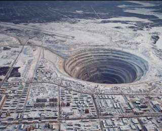Աշխարհի ամենամեծ ադամանդի հանքը. խորություն՝ 525 մ, տրամագիծ՝ 1200մ: