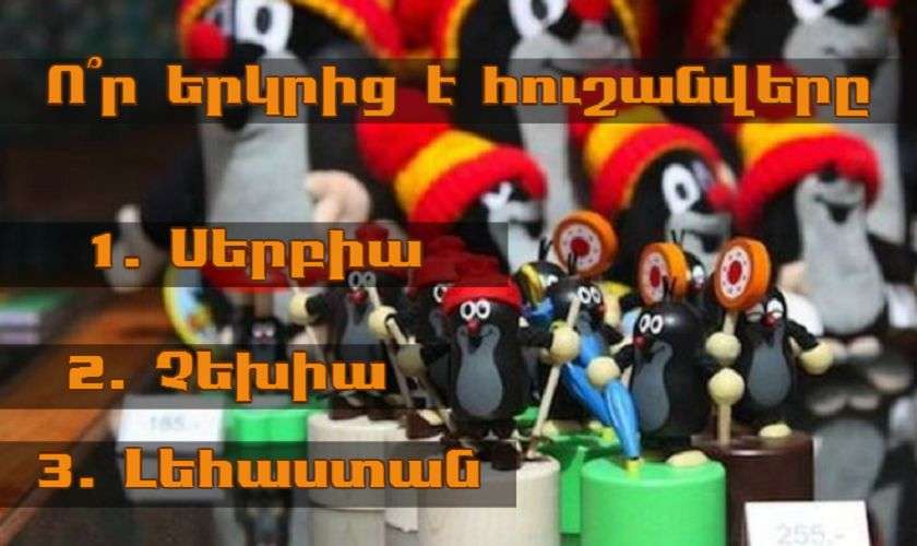 Infoman.am-ը որոշել է պարզել՝ ինչպիսի ճանապարհորդ եք, և առաջարկում է անցնել այս թեստը: Նայիր հուշանվերներին և փորձիր հասկանալ, թե որ երկրից են նրանք: Նյութի աղբյուր՝ http://infoman.am/tester/878-test-vor-erkric-e-hushanvery.html Կայքում տեղ գտած մտքերն ու տեսակետները հեղինակի սեփականությունն են և կարող են չհամընկնել BlogNews.am-ի խմբագրության տեսակետների հետ: print Տպել